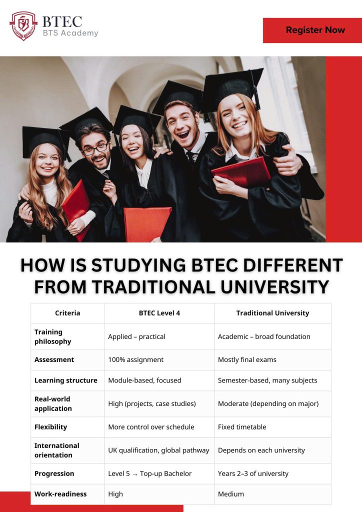 24 November, 2025 2025-11-29 2:28How Is Studying BTEC Different from Traditional University? A Realistic Year-to-Year Comparison